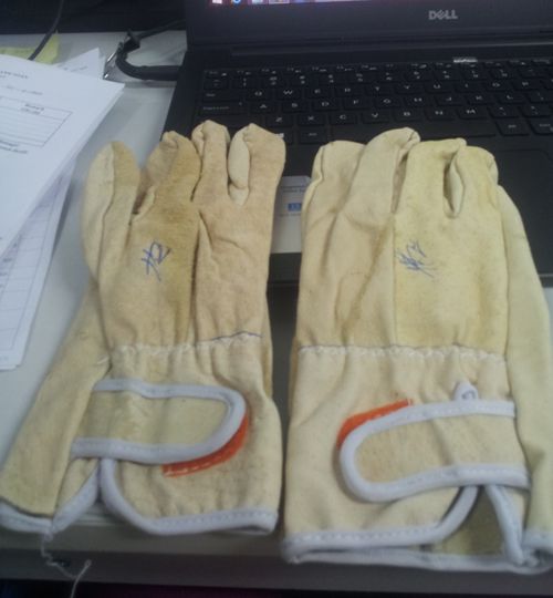Mầu sắc: nâu, kem Chất liệu: da heo Đặc tính: bảo vệ tay , da hàn chống cháy.